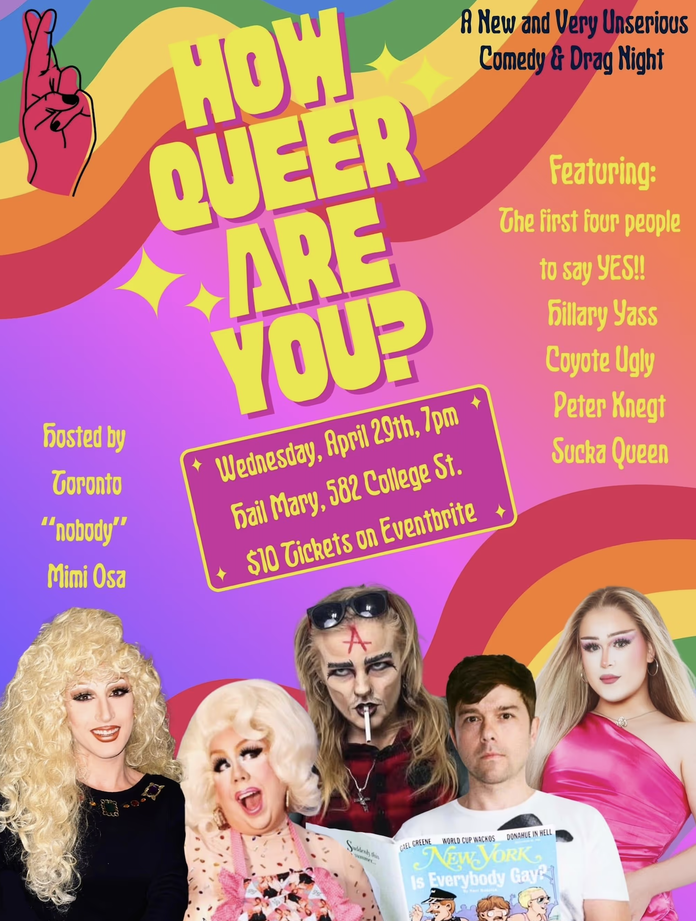 In this new show, each performer will take the stage to (hopefully) inflict laughter on an audience held hostage - I mean, captivated! Expect stand-up, sketch comedy, comedic lip sync numbers, and a foolish game or two (No Jewel involved). Join Mimi as she embarks on a quest to quantify and validate the queerness of four lucky performers - she does have a degree in Gender Studies, after all. Do they have a Sphynx cat for a pet? Do they own Tegan & Sara's "Sainthood" on vinyl? Have they completed treatment for an STI in the past 2-4 weeks? All these questions and more will help Mimi and the audience to determine just how queer these people really are!